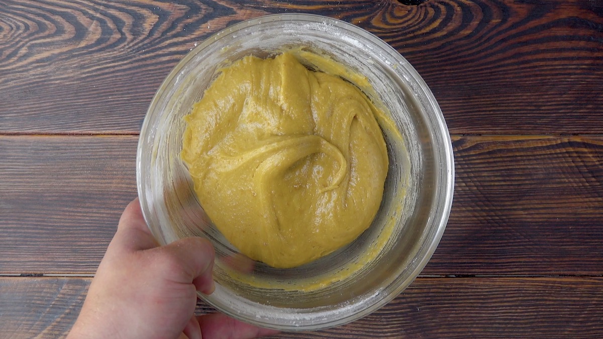 1.) Verrühre zuerst – bis auf das Mehl und das Backpulver – alle Zutaten für die Kekse miteinander. Erst danach gibst du das Mehl und das Backpulver hinzu und vermengst alles zu einer cremigen Masse. Stelle den Teig dann eine halbe Stunde in den Kühlschrank.