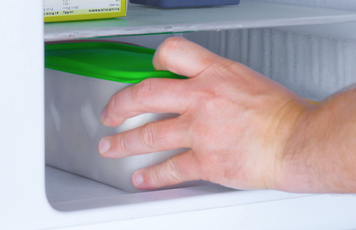 7. Falte nun die Frischhaltefolie zusammen und schließe die Tupperdose mit einem Deckel. Friere die Dose über Nacht ein.