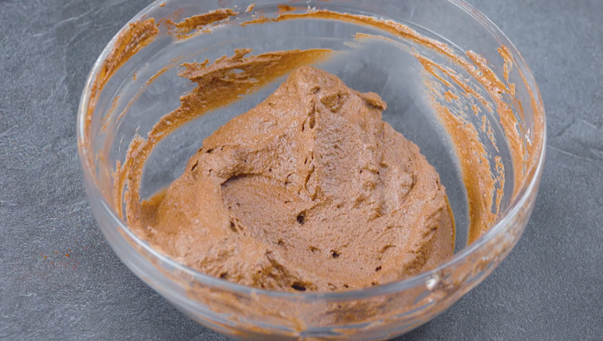 4. Gib in die zweite der drei Schüsseln Kakaopulver hinzu und vermenge alles miteinander.