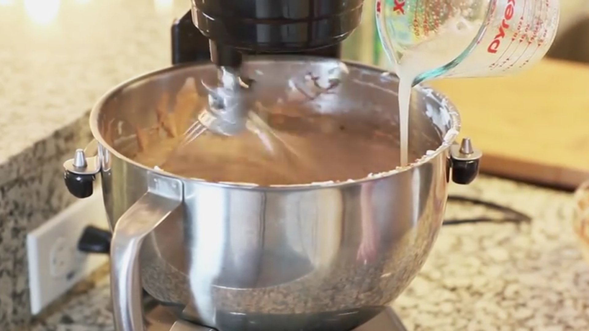 Jetzt gibst du noch das Vanille-Extrakt und die Nuss-Nougat-Creme dazu. Sollte die Nougat-Creme zu fest sein, kannst du sie ganz kurz in der Mikrowelle erhitzen.