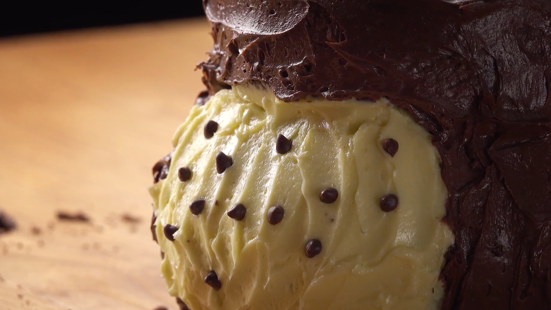 9.) Bestreiche den Kuchen nun vollständig mit Nutella-Buttercreme, auch die Ohren werden eingehüllt.