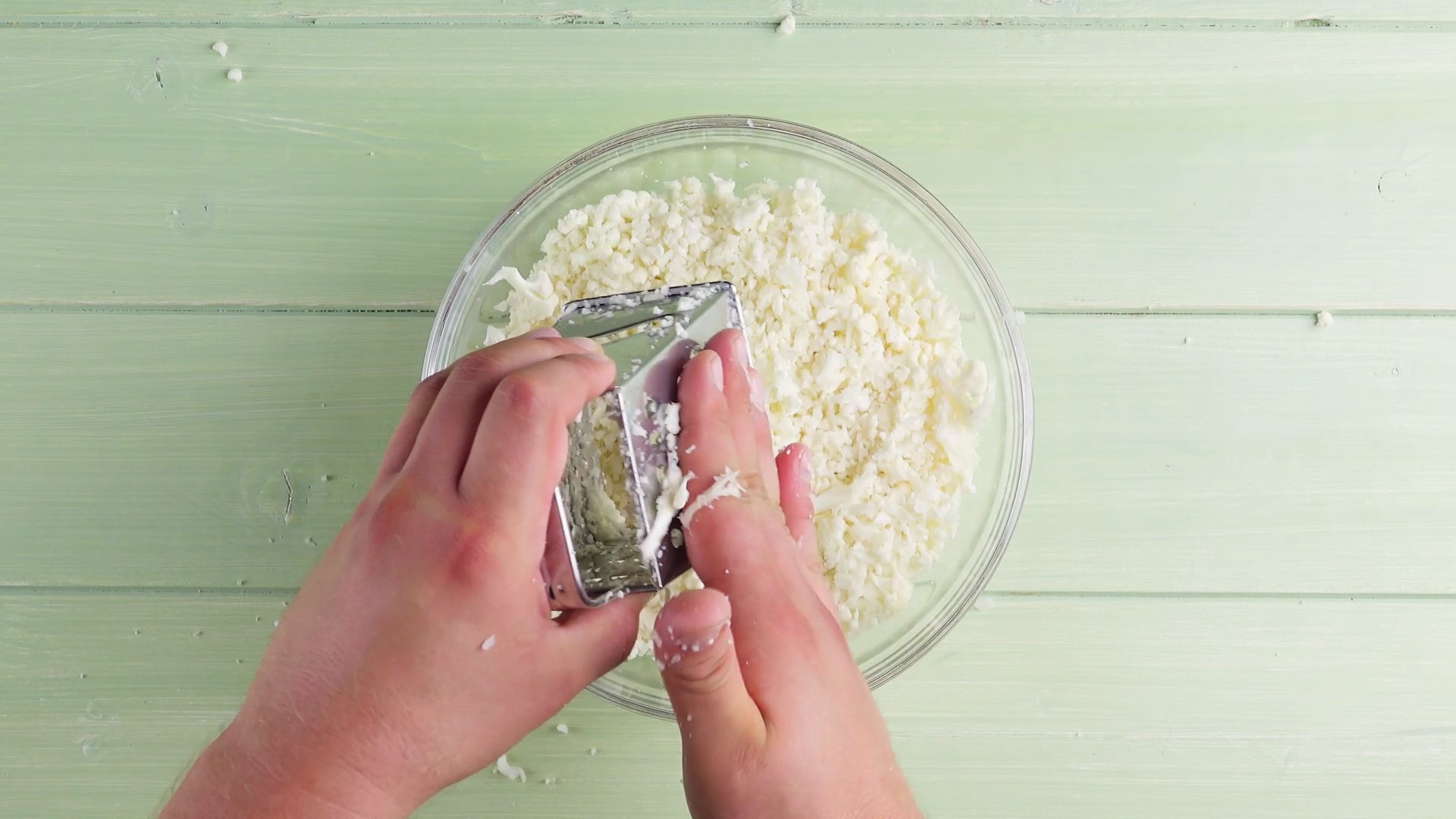 1.1) Schneide zunächst den Blumenkohl in Röschen und reibe diese mit einer Käsereibe mittelfein. Der geriebene Kohl kommt für 5 Minuten bei 700 Watt in die Mikrowelle. Alternativ kannst du ihn für 30 Sekunden in kochendem Wasser blanchieren.