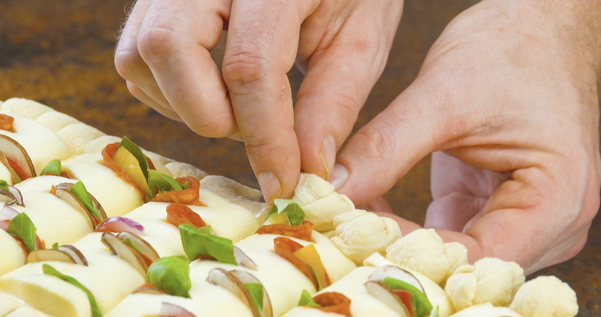 Tipp: Der Mozzarella sollte Raumtemperatur haben, dann ist er flexibler.