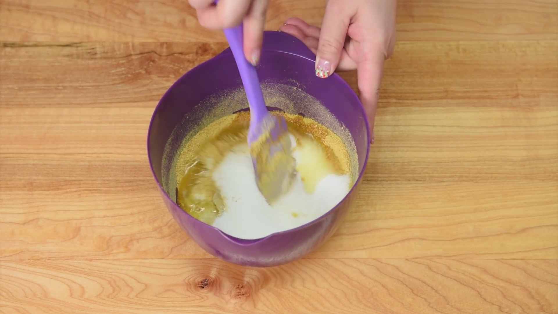 Dann mischen wir die zerbröselten Kekse mit Butter zu einem kleinen Teig. Das kommt dann für 15 Minuten bei 180 Grad in den vorgeheizten Ofen.