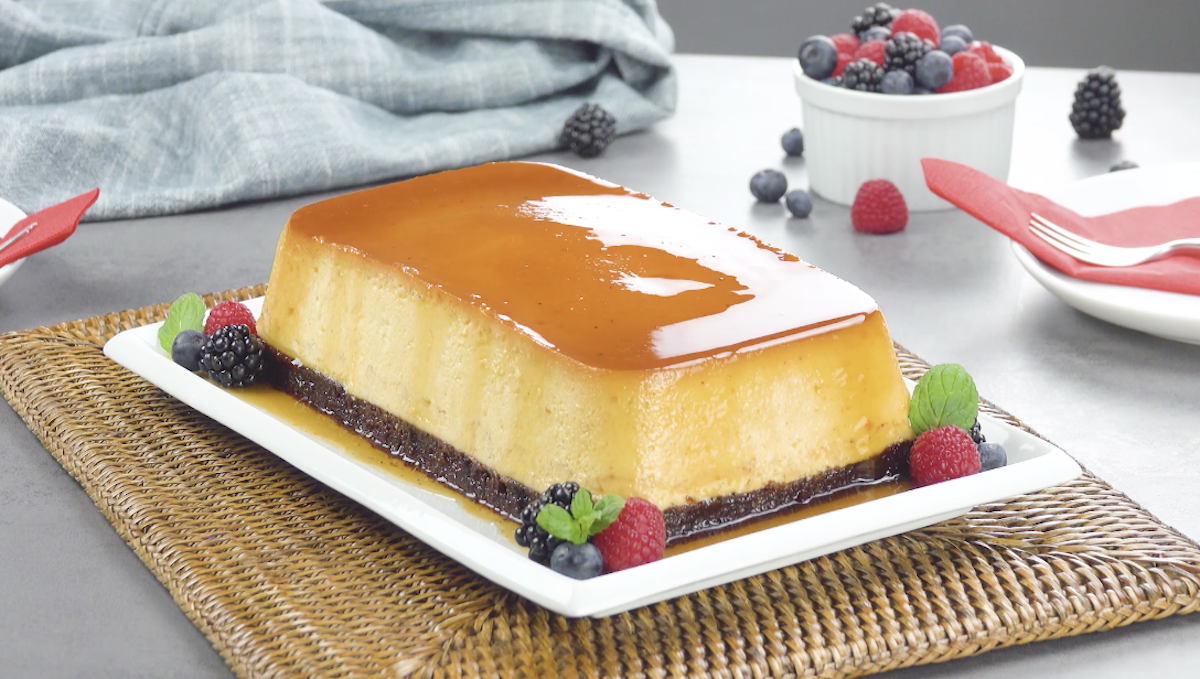 Dieser Nachtisch ist nicht nur in Spanien beliebt! Wir servieren euch einen Flan in XXL-Format bestehend aus 3 Schichten: Karamell, Pudding und Schokokuchen.