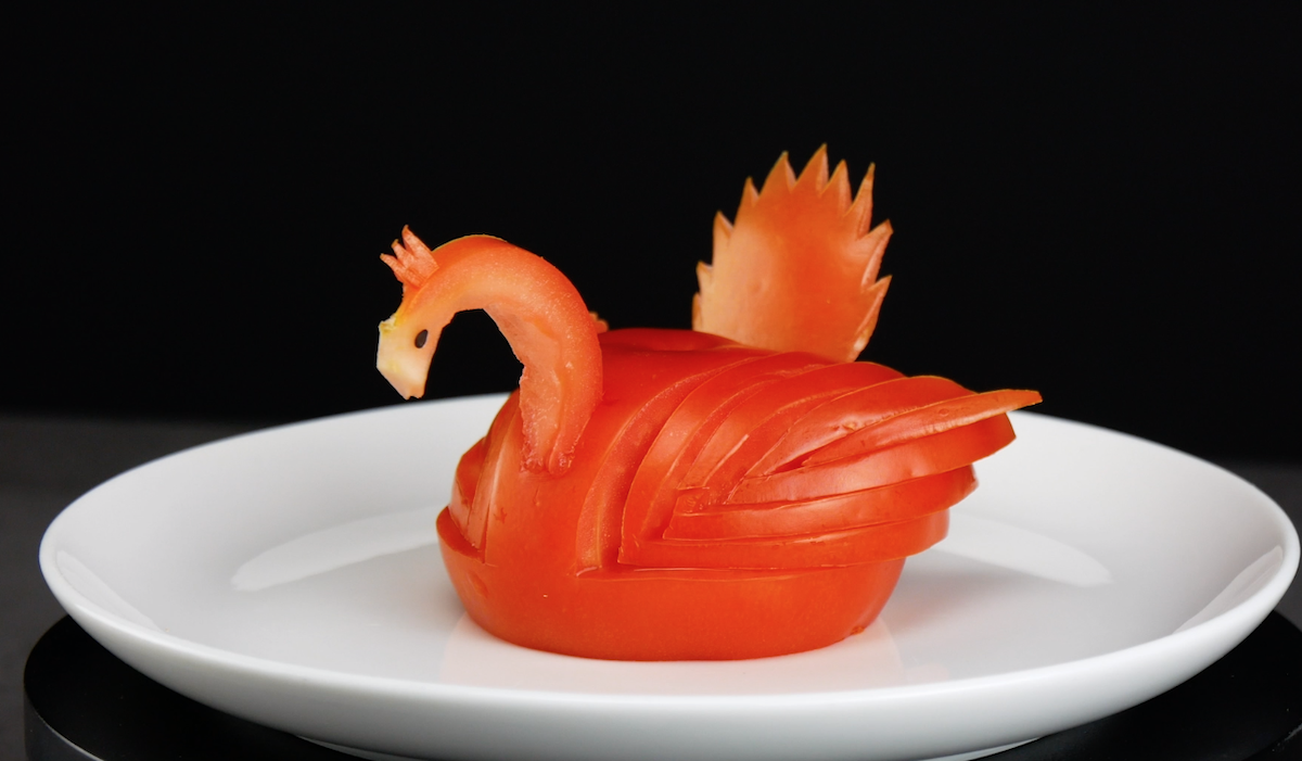 Aus 2 Tomaten kann man ganz einfach einen schönen Schwan schnitzen.