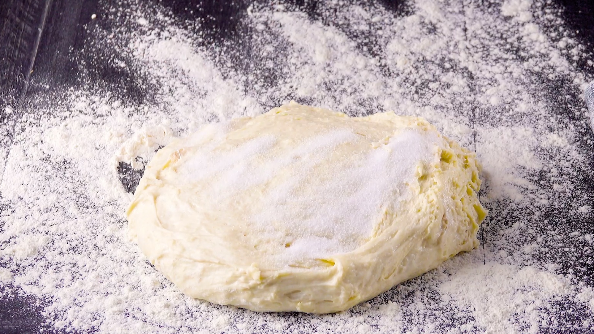 2.) Brösele danach die übrige Hefe in die Teigmasse und gib weitere 250 Gramm Mehl hinzu. Nun verknete den Teig gründlich, gib ihn auf eine gut bemehlte Arbeitsfläche und streue das Salz auf. Knete das Salz ein und forme den Teig zu einer Kugel. Decke die Teigkugel mit einem Tuch ab und lasse sie erneut für eine Stunde gehen.