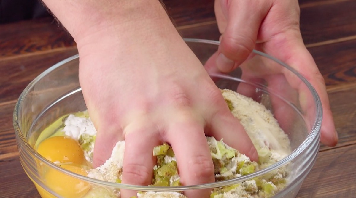 1.) Koche die Kartoffeln weich und zerstampfe sie zu Brei. Dann fügst du das Hähnchenhackfleisch, Mehl, Semmelbrösel und die Eier hinzu. Auch das Backpulver, die kleingehackten Jalapeños, Cumin, Salz und Pfeffer kommen in die Masse. Mit einer kleinen Reibe wird eine Knoblauchzehe und ein Stück Ingwer gerieben. Vermenge alles mit deinen Händen.