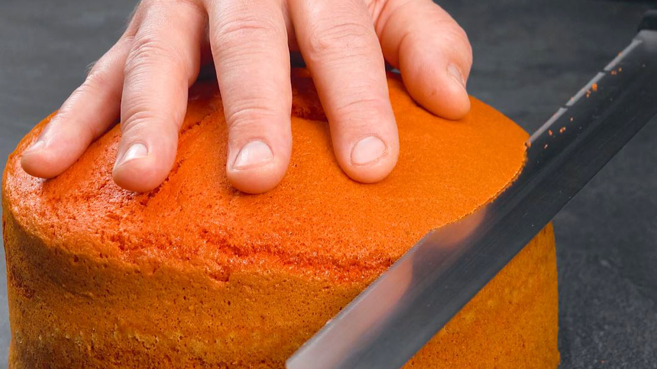 3. Löse nach dem Abkühlen den Ring der Springform und schneide den Teig in 2 cm breite Tortenböden.