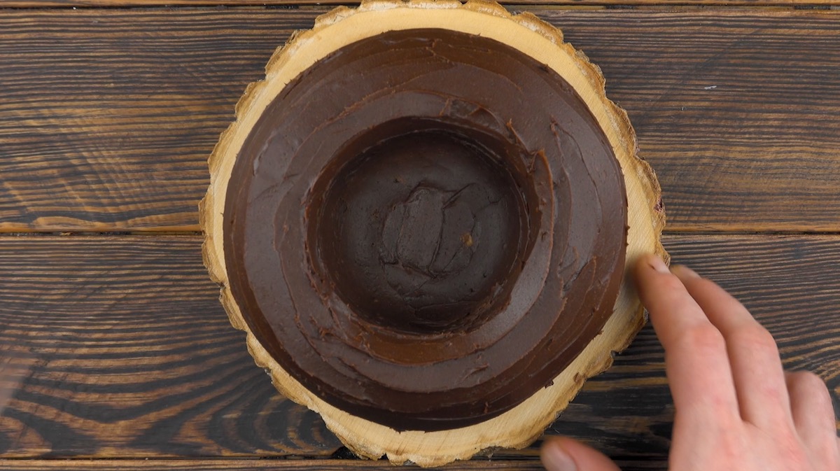 Bestreiche den ganzen Kuchen mit der Schokocreme.