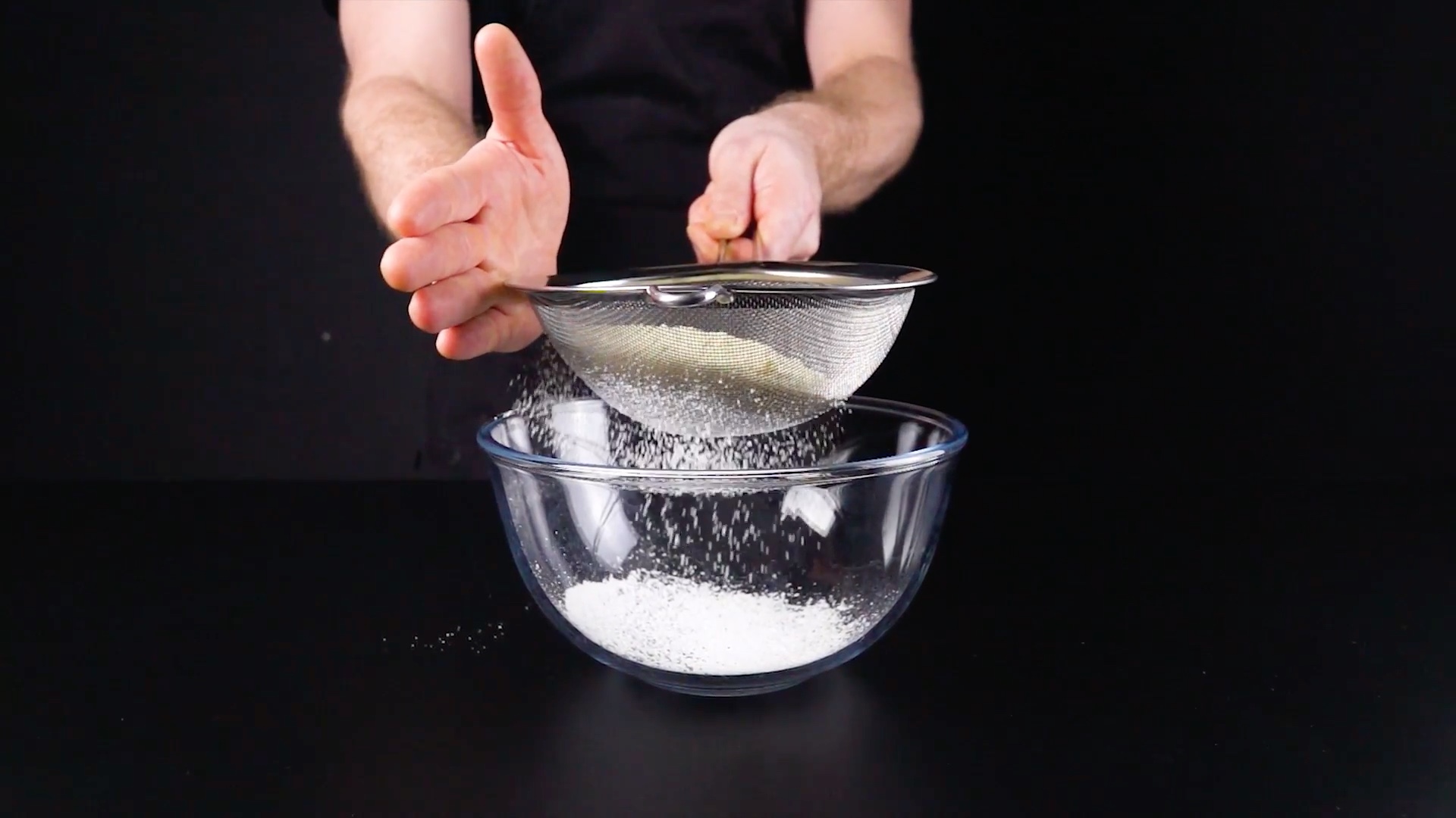 - 300 g Puderzucker, in 4 Portionen je 75 g