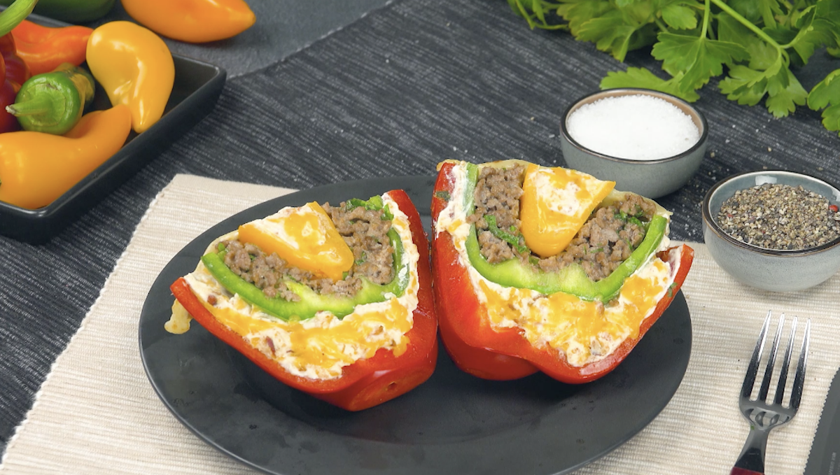 Noch mehr Lust auf gefüllte Paprika? Hier findest du das Rezept für die Paprika, gefüllt mit Rindersteak, Pilzen und Käse, aus dem Bonusvideo.