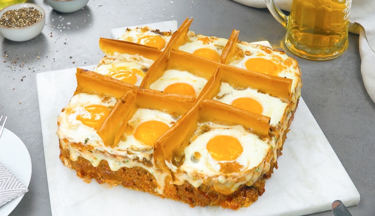 Mit knusprigen Sandwiches aus Lasagneplatten, einer sanften Frischkäsefüllung und Eiern machst du mit uns den besten gefüllten Hackbraten – dieses Rezept wirst du lieben!