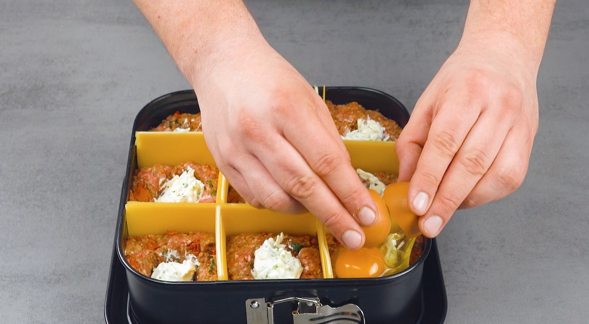 5. Schlage nun in jedes Separee ein Ei.