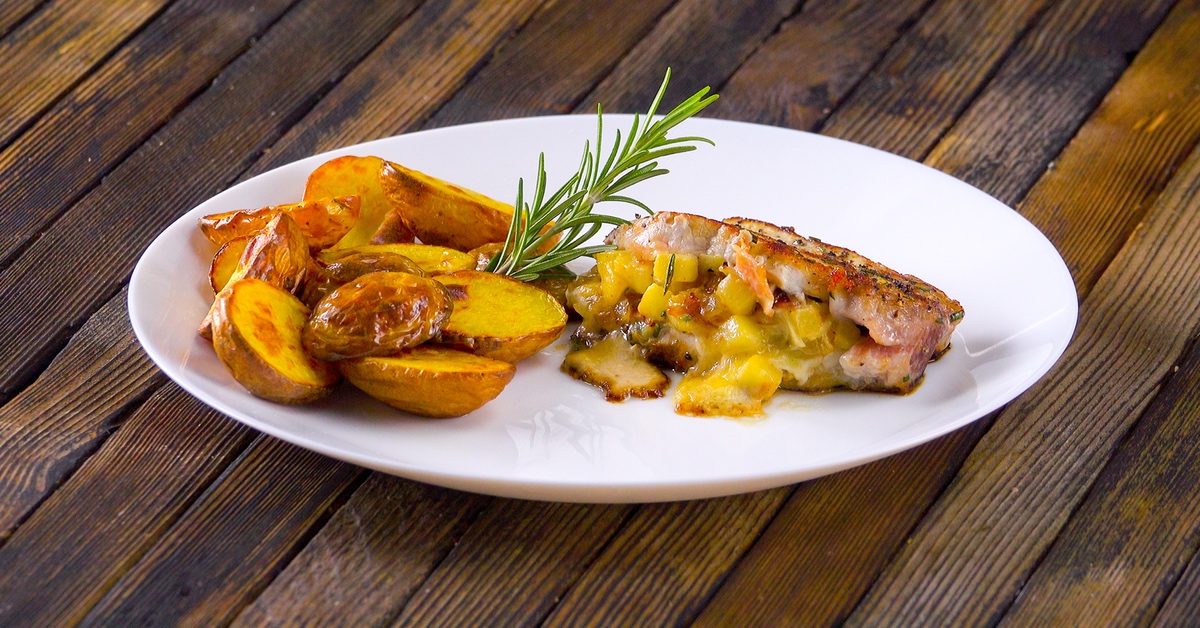 Bisher hast du dich zu Hause in der eigenen Küche noch nie an Schweinerücken herangetraut? Kein Problem – wir zeigen dir heute ein supereinfaches Rezept für gefüllten Schweinerücken in Taschenform. Die Füllung ist ein Mix aus herben und süßen Aromen, der dem Fleisch einen unvergesslichen Beigeschmack verleiht. Prädikat ultralecker!