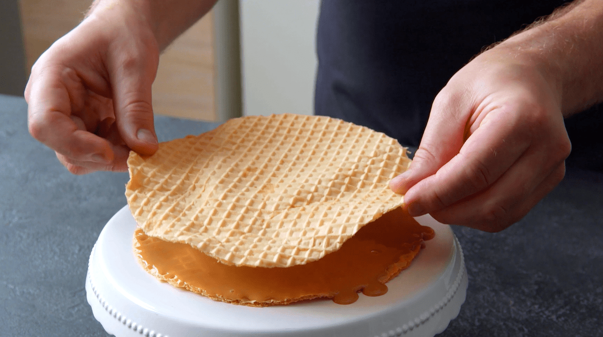 8. Wiederhole das Schichten, bis die letzte Waffel ganz oben liegt.