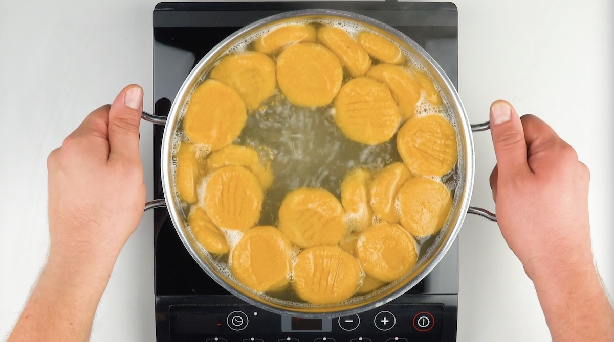 5.) Koche die Gnocchi für 3 Minuten in Salzwasser.