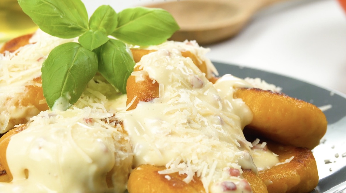 Angebratene Gnocchi aus Kürbis und Kartoffeln mit cremiger Soße