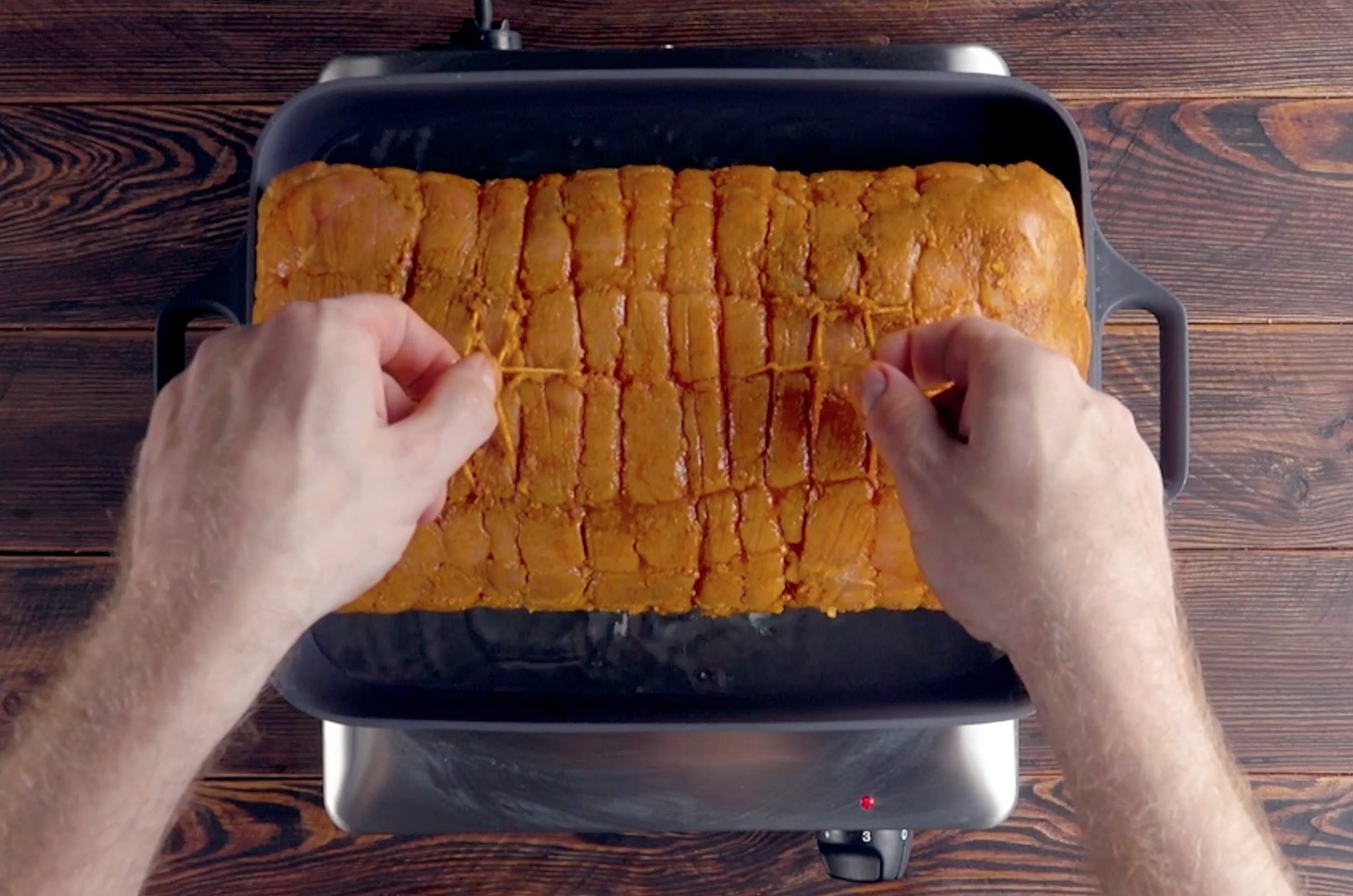 Wiederhole diese Schritte mit allen Schweinerücken-Stücken.