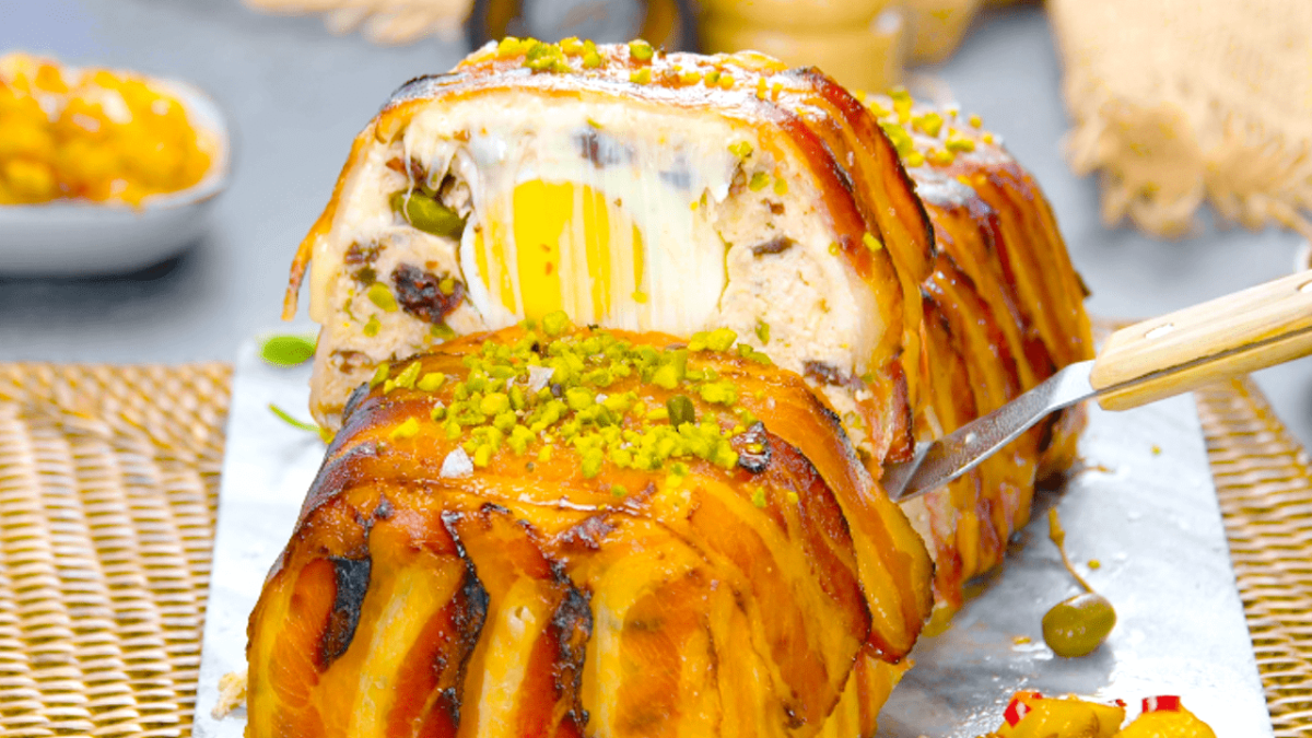 Mit Eiern, Käse und Speck kannst du deinen Hackbraten ganz einfach aufpeppen. So erwartet dich im Handumdrehen ein supersaftiger Hackbraten mit Ei im knusprigen Speckmantel.