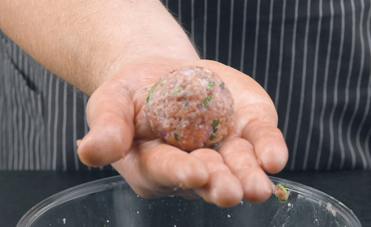 2. Forme aus der Masse 8 gleich große Hackbällchen.