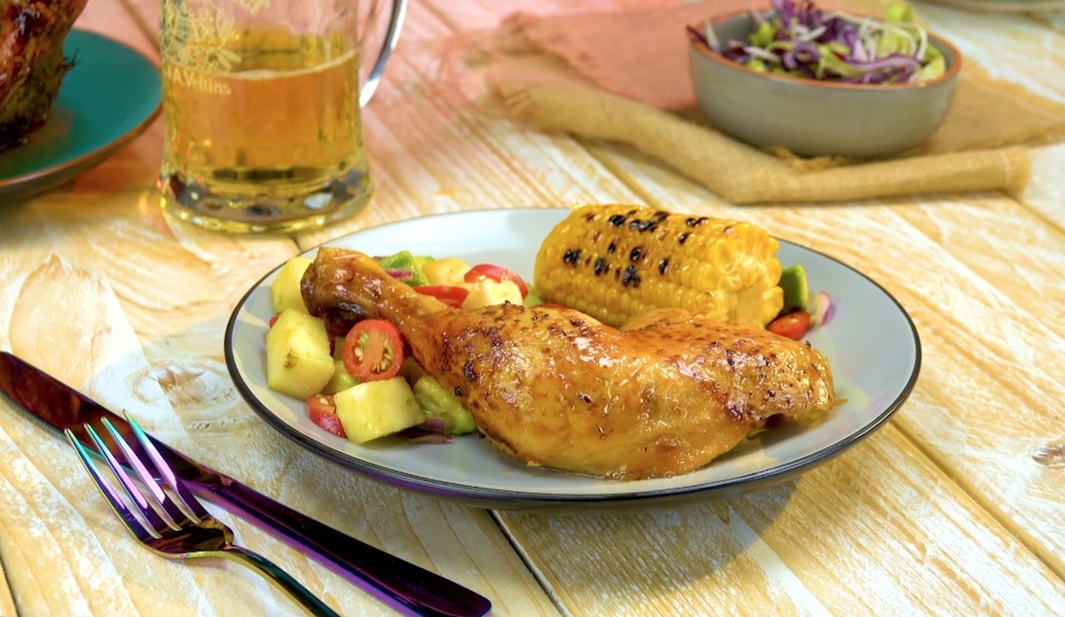 Was haben eine tropische Frucht und Geflügelfleisch gemeinsam? Mehr, als du denkst. Die beiden Komponenten bilden nämlich zusammen ein Geschmackserlebnis der ganz besonderen Art. Mit einer leckeren Avocado-Ananas-Salsa und einem Maiskolben wird dieses Hähnchen zu DEM Sommergericht überhaupt.