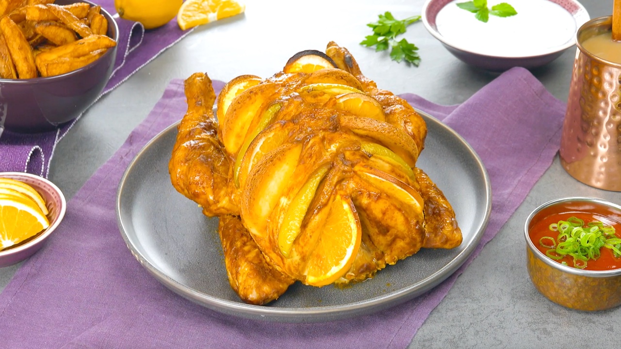 Wenn auch du in der Küche ein wenig orientalisches Flair genießen willst, probiere dieses etwas abgewandelte Rezept aus. Mit der leckeren Füllung sowohl außen als auch innen wird dieses Brathähnchen zu einer wahren Geschmacksbombe.