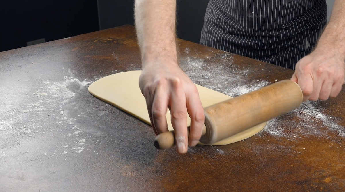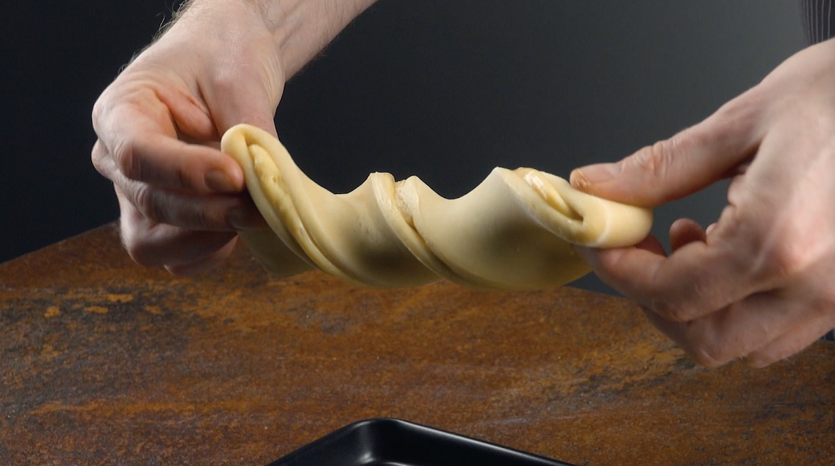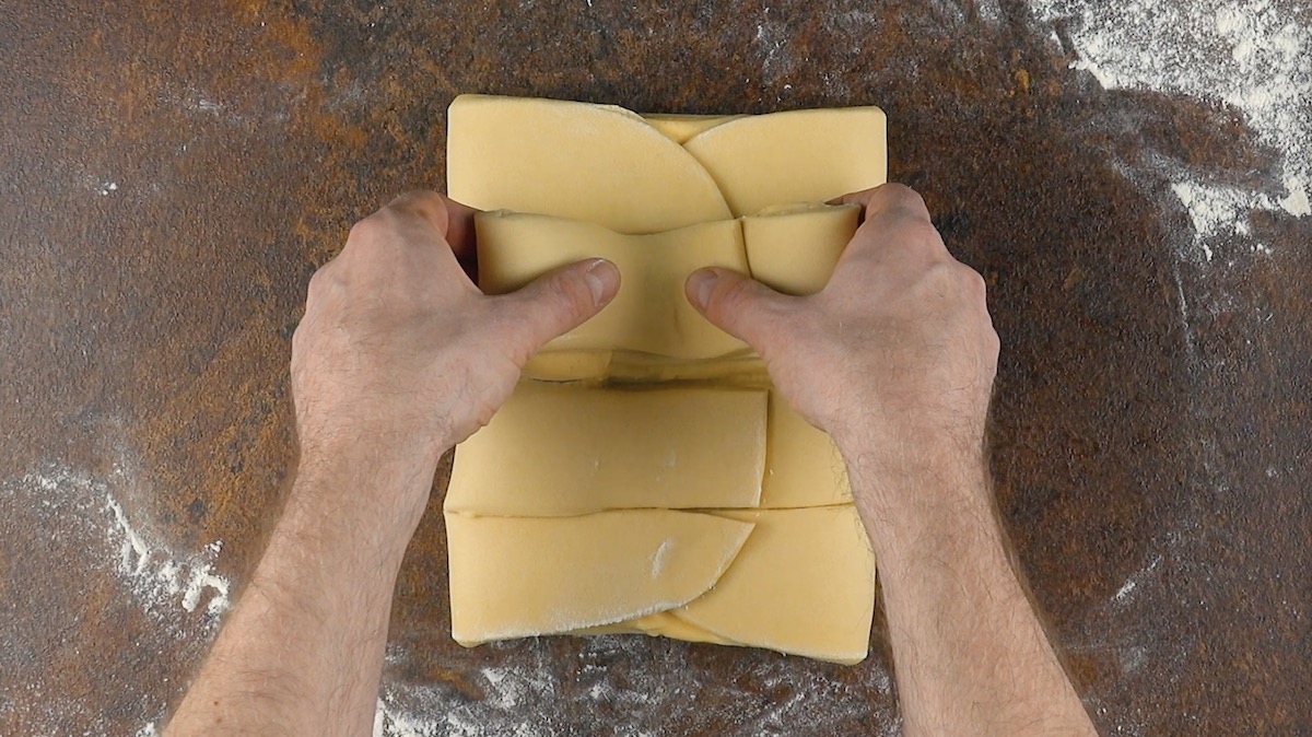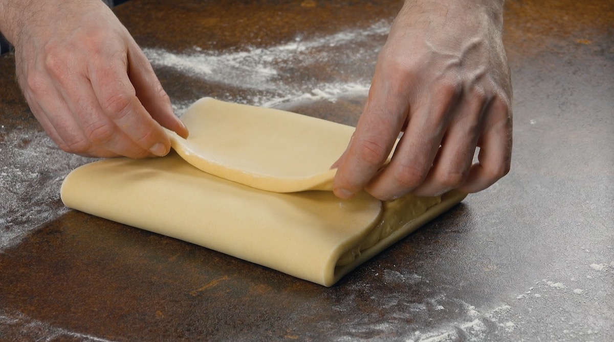 5. Falte die Seiten des Teigs zur Mitte hin ein.