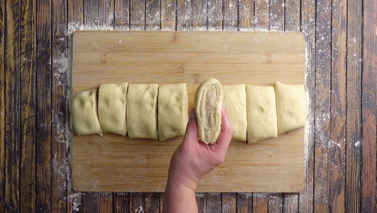 2.2) Schneide auch diese Teigrolle in Stücke.