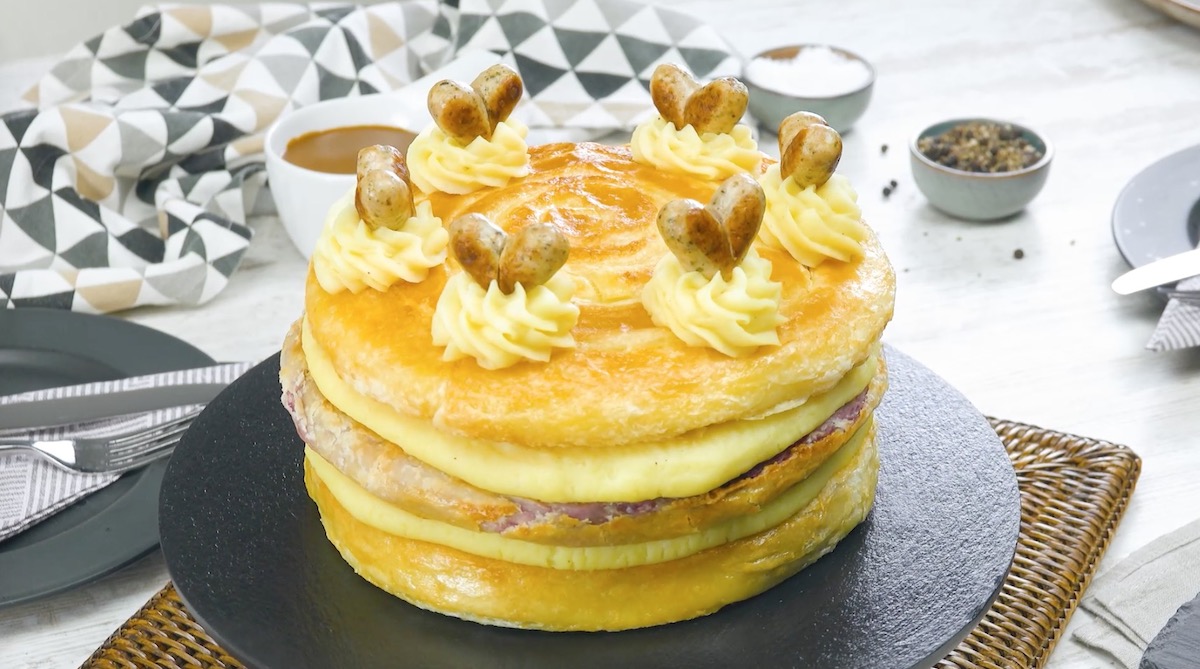 Auf den ersten Blick sieht dieser herzhafte Kuchen gar nicht herzhaft aus, oder? Doch beim Geschmack kommt garantiert kein Irrtum auf, denn, wie schon einzeln auf dem Teller, harmonieren Bratwürstchen, Rotkohl und Kartoffelpüree auch in Kuchenform hervorragend miteinander, vor allem wenn Blätterteig im Spiel ist. Spricht dich Essen mit hübsch angerichtetem Kartoffelpüree an? Dann ist dieser Auflauf ebenfalls wie gemacht für dich.