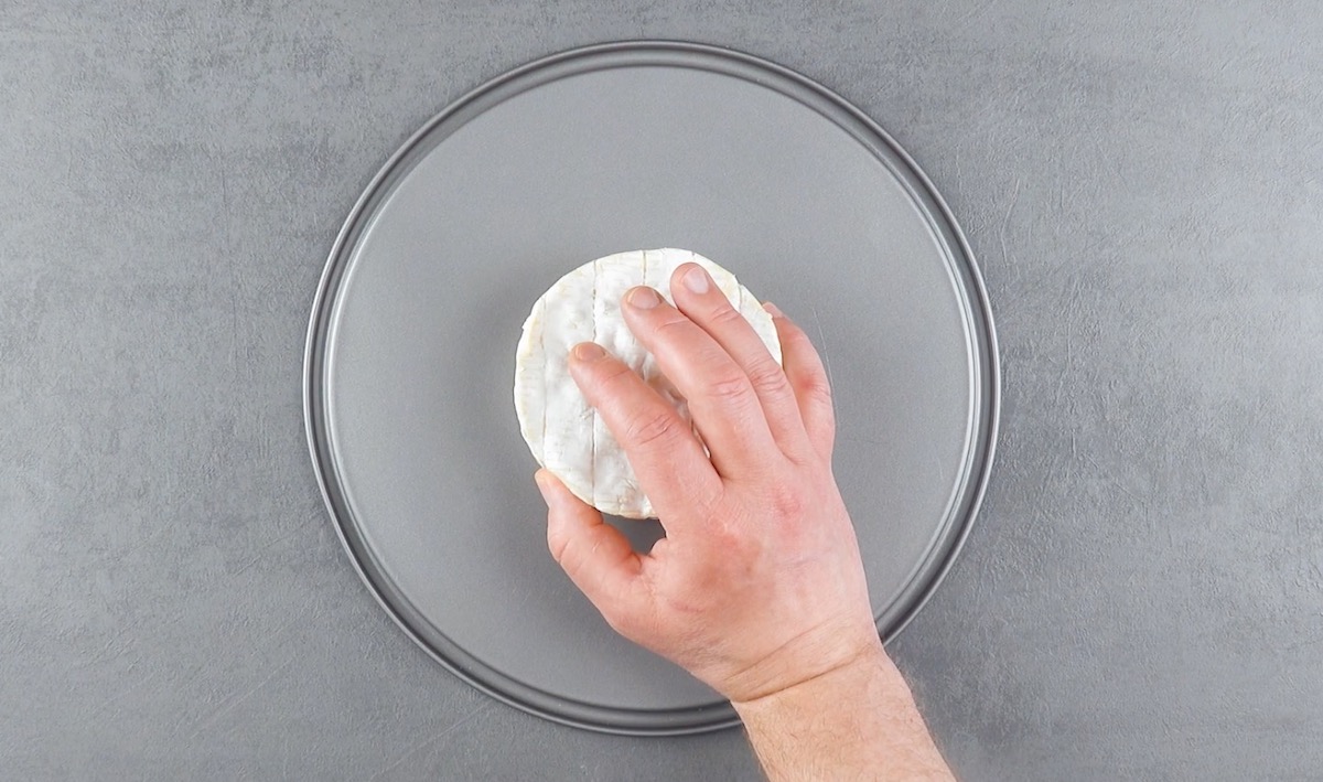 4. Setze die Camemberts an den Schnittkanten zusammen und lege sie mittig auf den Boden einer Springform.