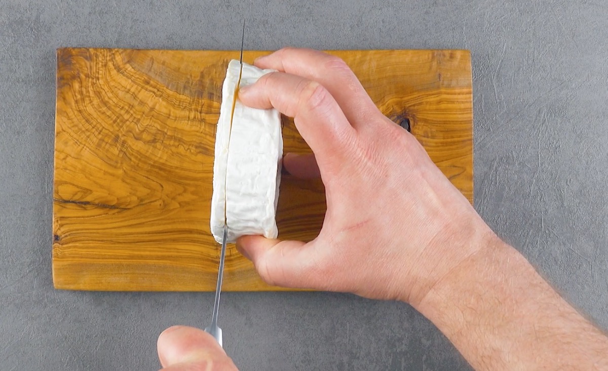 3. Schneide von jedem Camembert den „Deckel“ ab.