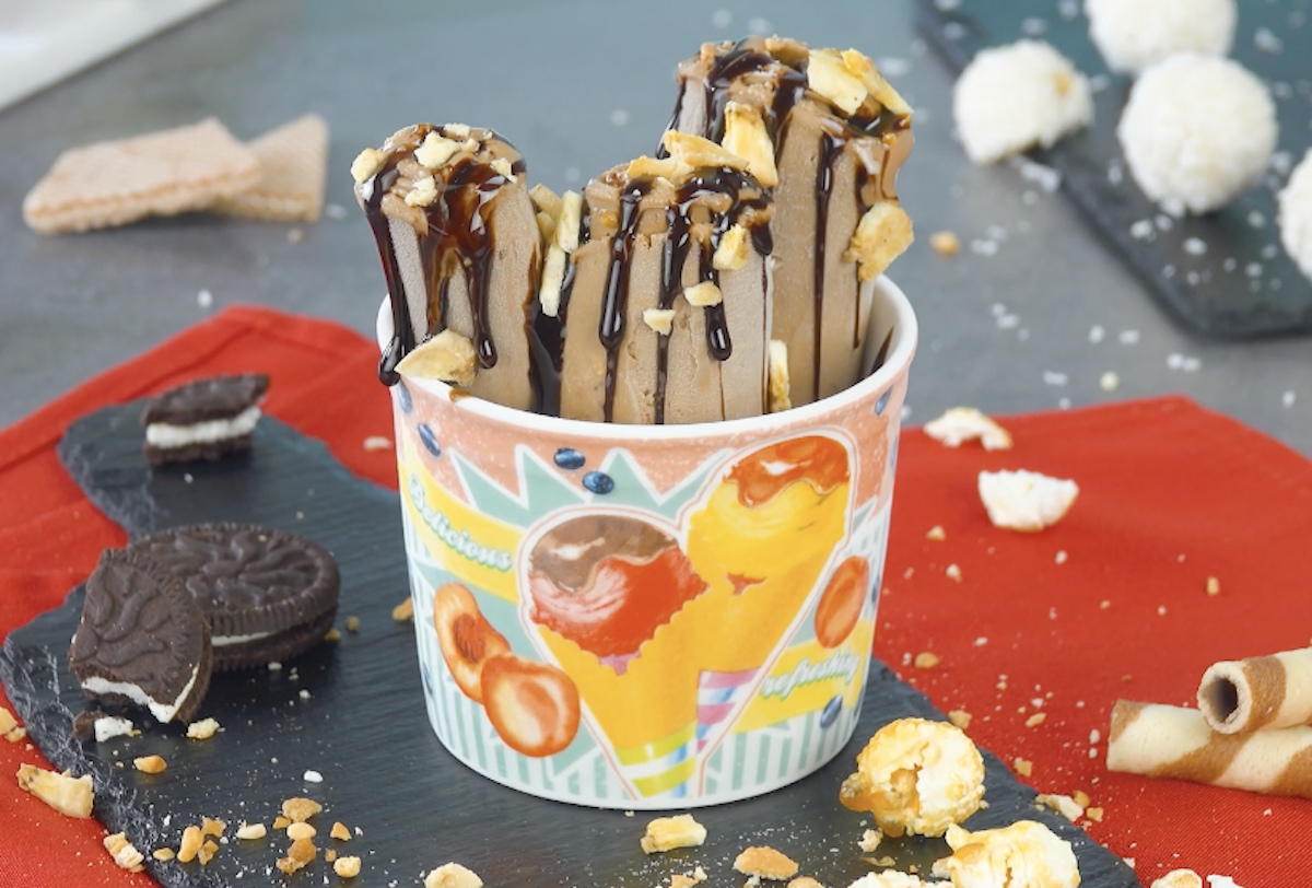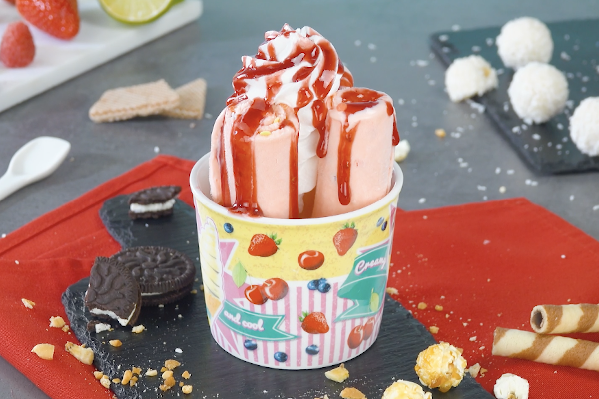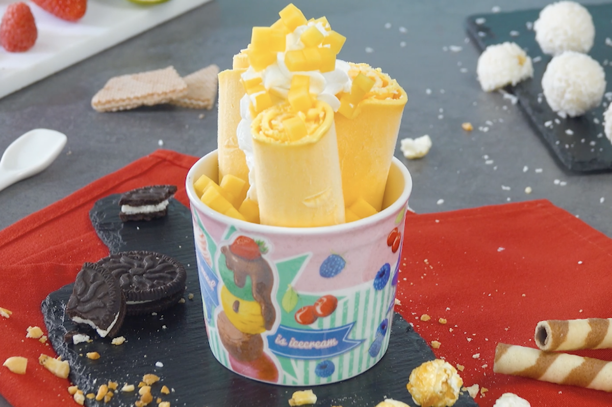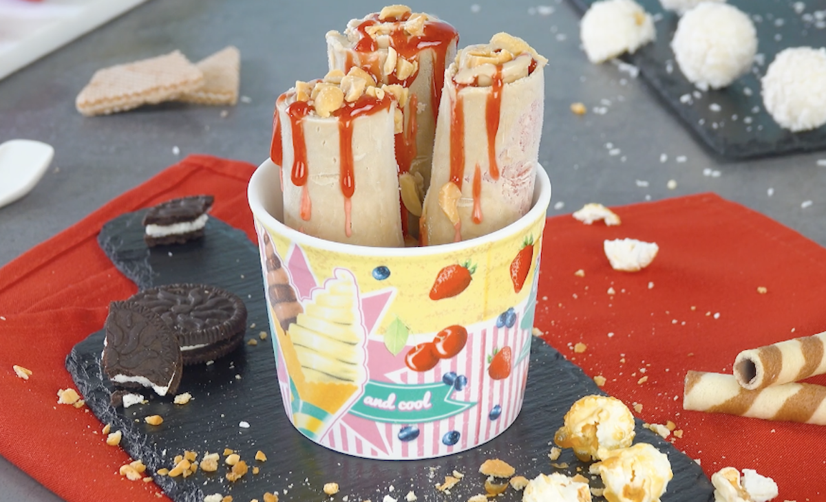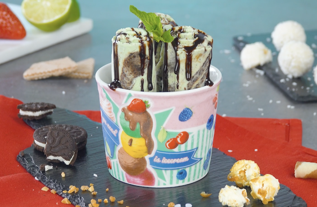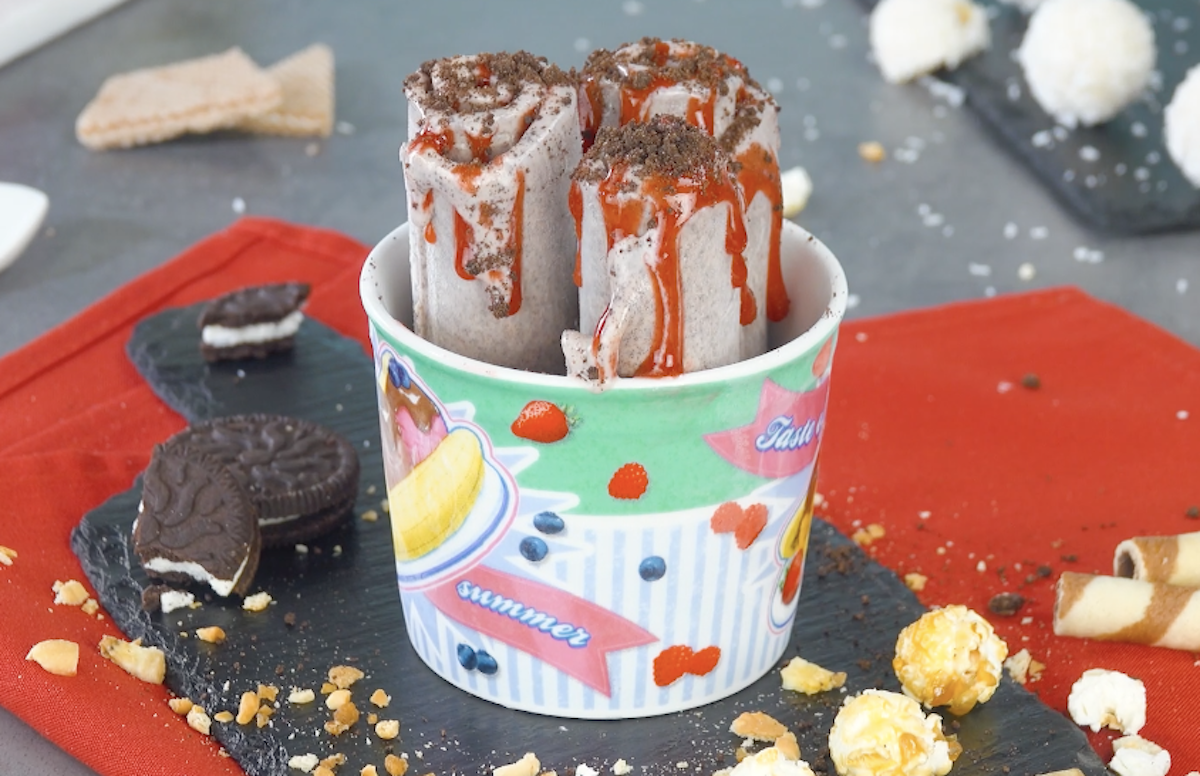 Was für eine zarte Versuchung! Eiscreme als hauchdünne Röllchen – und das Ganze auch noch ohne Eismaschine! So einfach könnt ihr die trendigen Ice Cream Rolls aus Thailand in der eigenen Küche zubereiten. Mach dich bereit für köstliche Eisröllchen in 8 verschiedenen Geschmacksrichtungen. Unter anderem mit dabei: Minz-Schoko-Eis, Mango-Kokos-Eis und Oreo-Erdbeer-Eis!