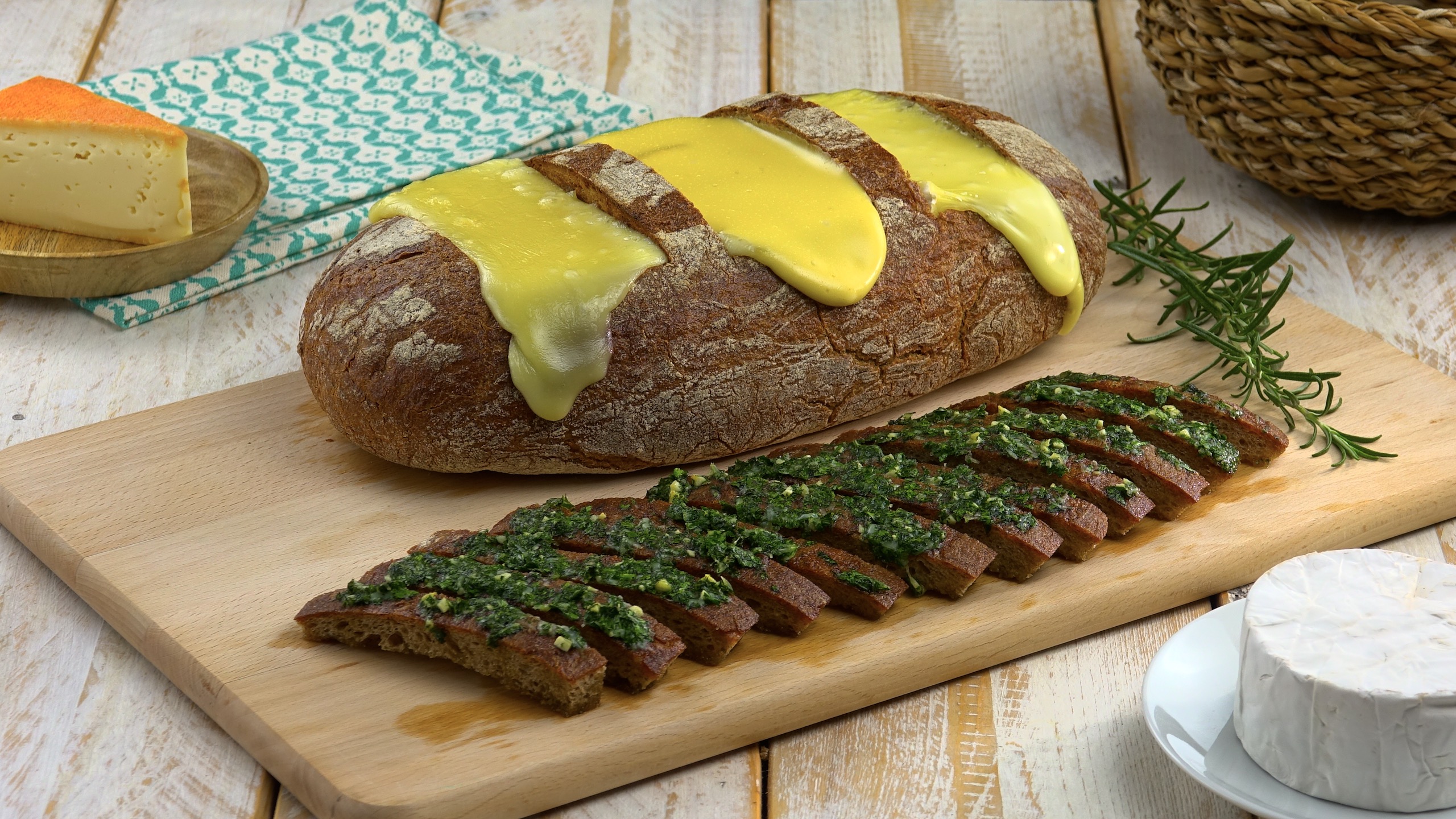 Überzeuge dich hier davon, ob dieses Dreikäsebrot auch ein Dreikäsehoch ist.