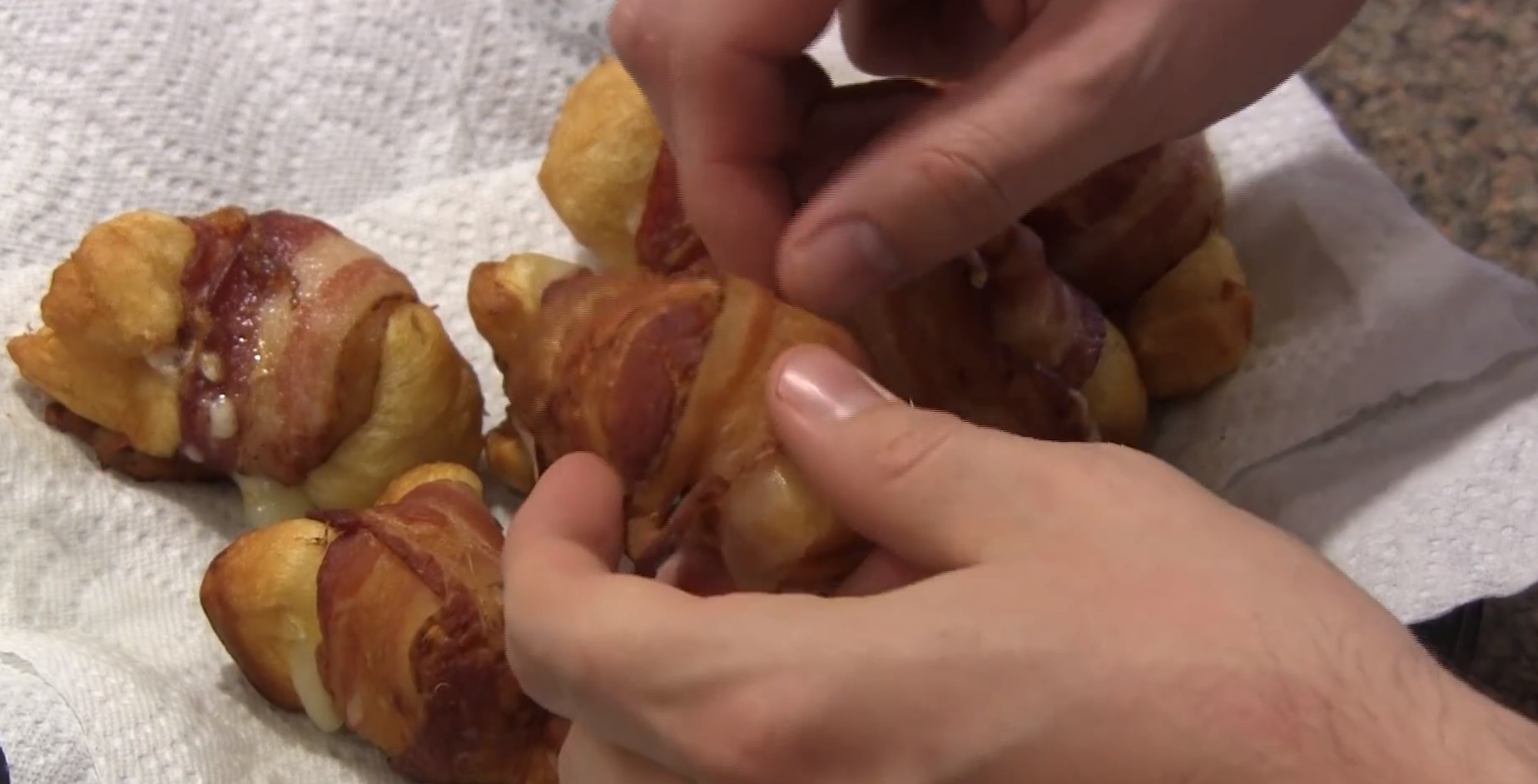 Dann kurz auf Küchenkrepp abtropfen lassen, die Zahnstocher entfernen und dann heißt es nur noch: