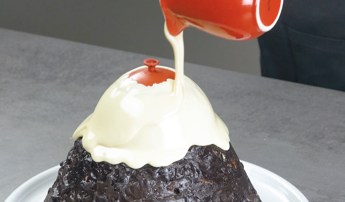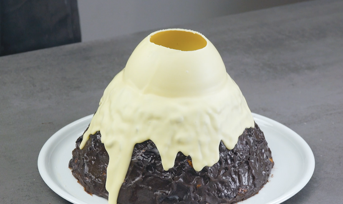 Einen weiteren essbaren Vulkan findest du hier: Kokoskuchen mit cremiger Füllung.