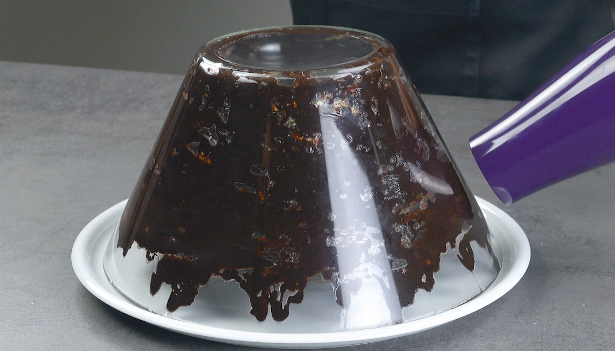 7. Stürze am nächsten Tag die Masse aus der Schüssel auf einen Teller. Um die Schüssel zu lösen, nimm einen Föhn zu Hilfe. Entferne auch die kleine Schüssel.