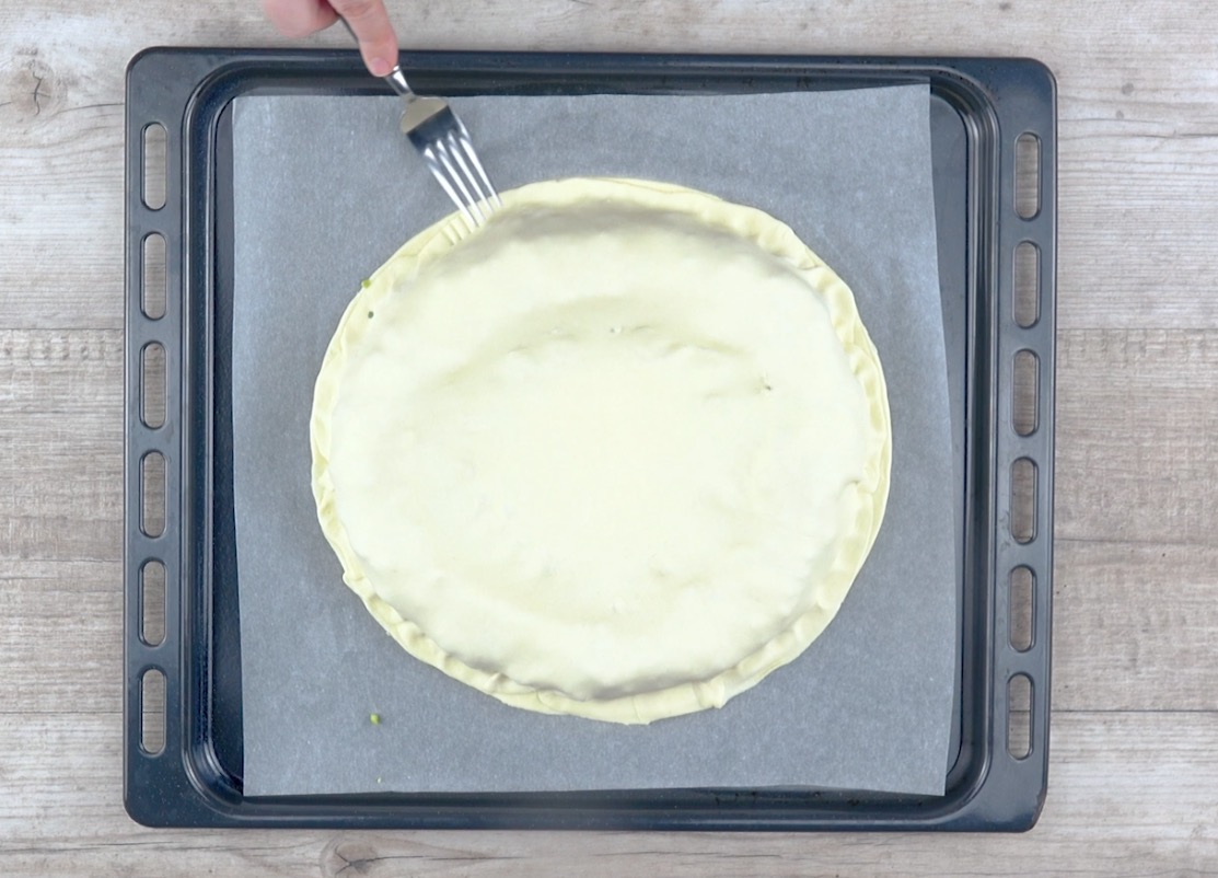 Drücke dann die Zacken einer Gabel rundherum um den äußeren Rand.