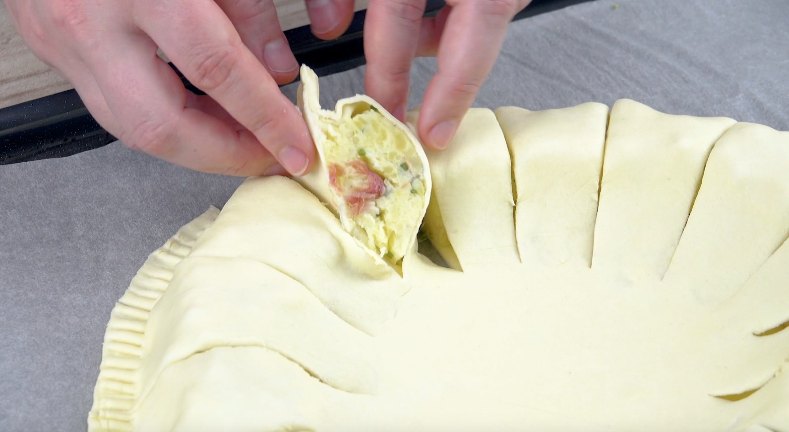 Köstlicher Blätterteig-Ring mit Kartoffelpüree und Schinken