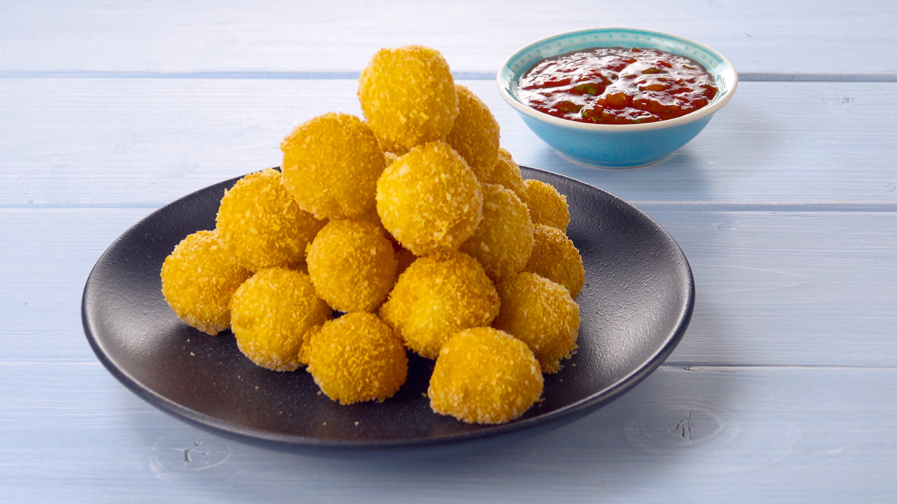 3.) Frittiere die Kugel dann für 7 Minuten in 180 °C heißem Öl.