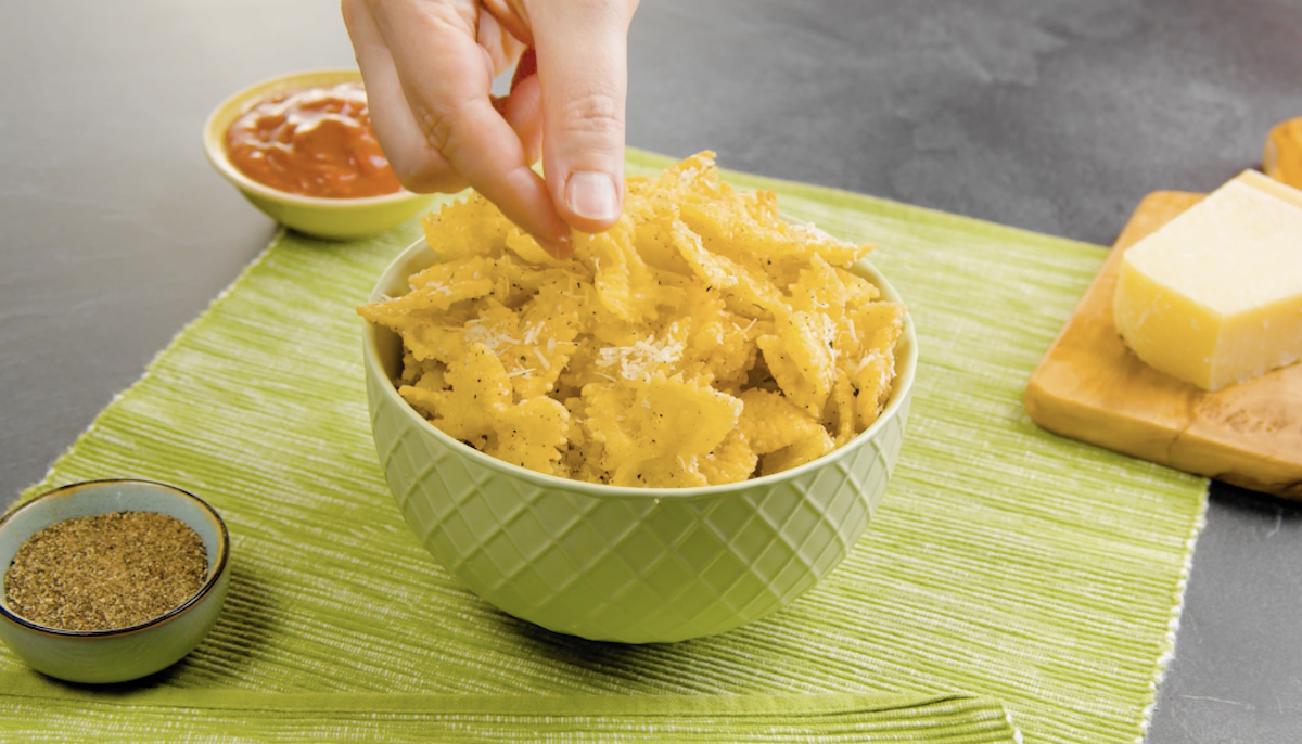 Diese Pasta-Chips machen den regulären Kartoffelchips auf jeden Fall harte Konkurrenz. Die Zutaten hat fast jeder zu Hause und in kürzester Zeit kannst du einen variantenreichen Snackteller zusammenstellen. Guten Appetit!