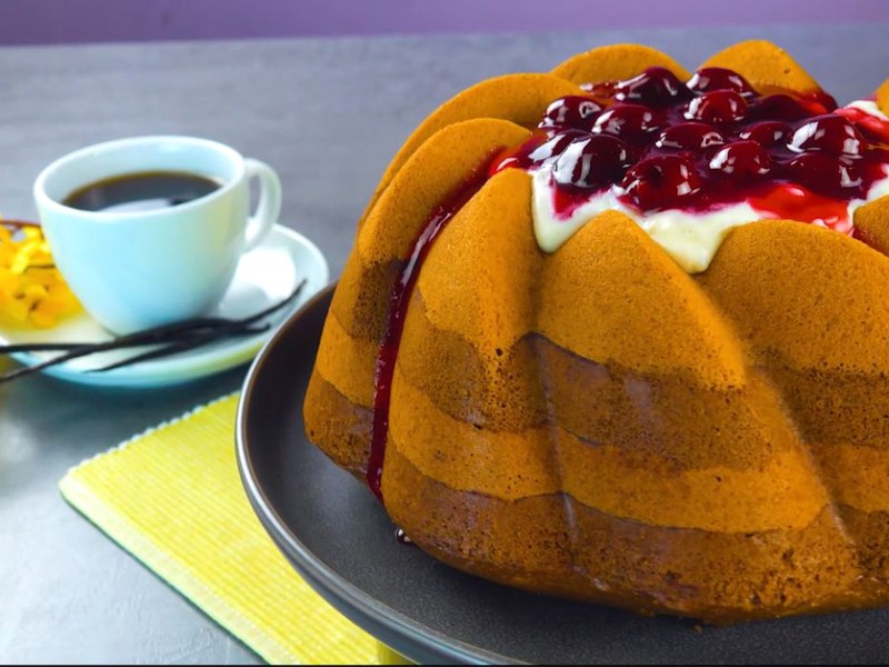 Raffinierter Milchreis-Kuchen mit Kirschgrütze und Zimt