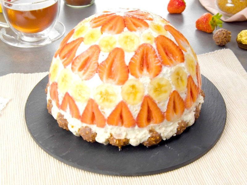 Fruchtiger Kuchen mit Rosen aus Mango und Erdbeeren