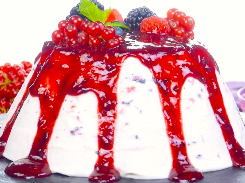 Fruchtige Eistorte mit einer Füllung aus Waldbeeren und Rum