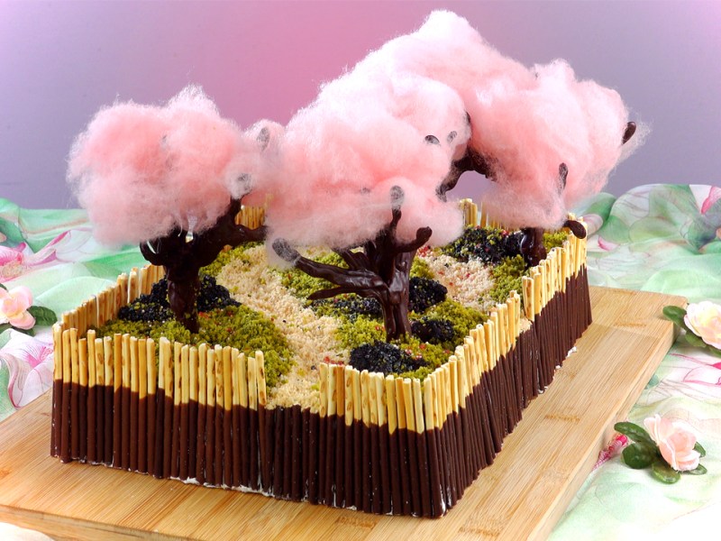 Kirschblüten-Kuchen, der wie ein Kunstwerk aussieht