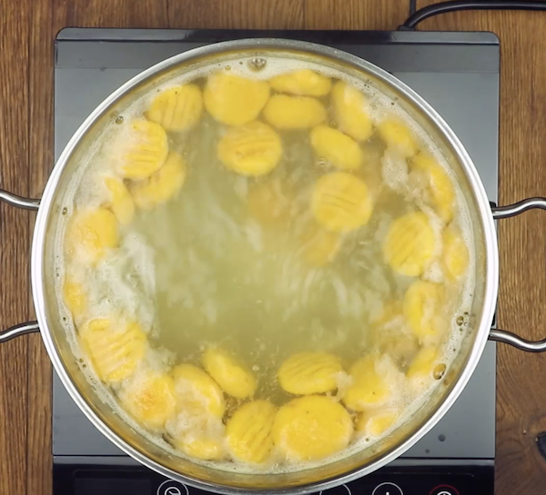 5.) Nun werden die so hergestellten Gnocchi nur noch etwa drei Minuten in gesalzenem Wasser gekocht.