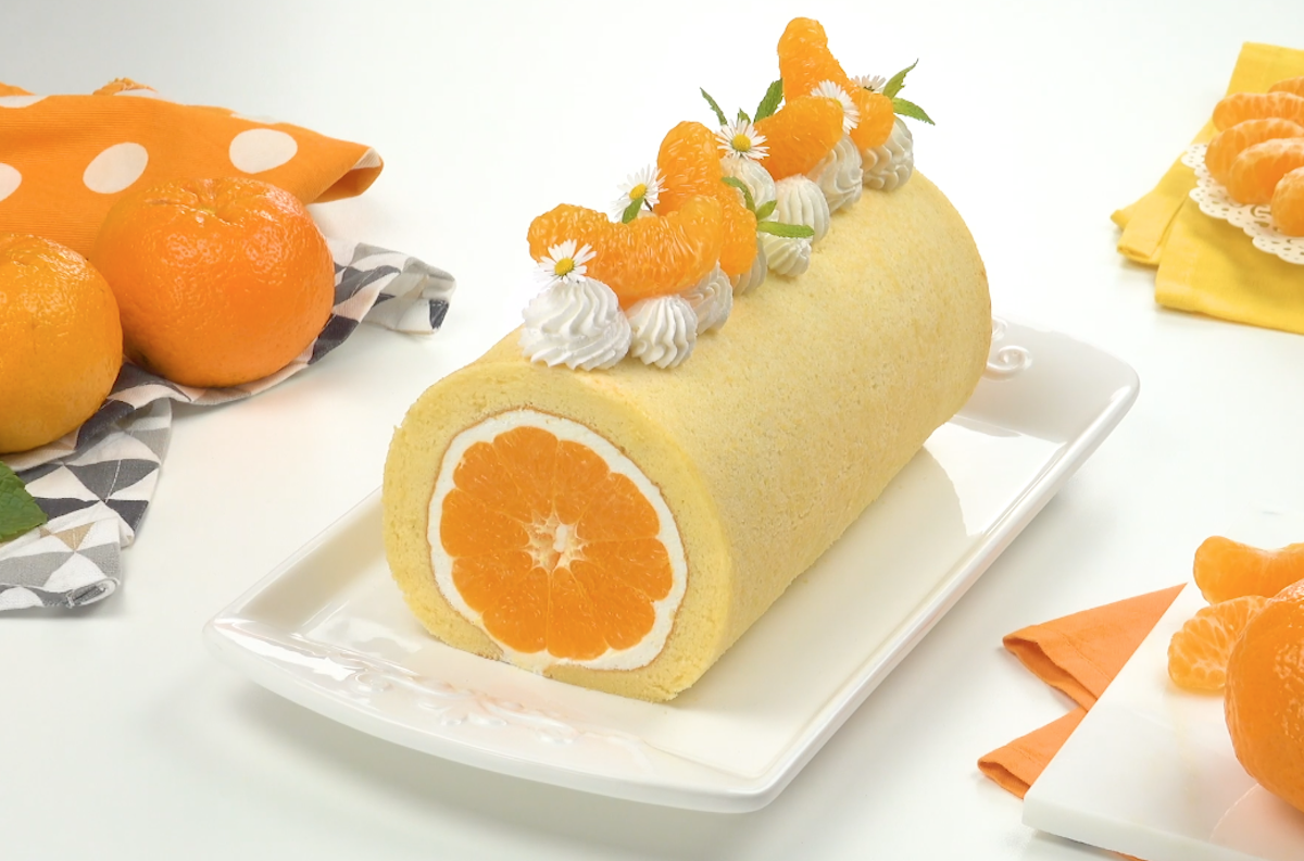 Garniere die fertige Rolle mit Schlagsahne, frischer Minze, Mandarinenfilets und kleinen Blüten deiner Wahl. Dieses Dessert ist wirklich simpel und schnell gemacht. Dabei schmeckt es herrlich erfrischend und leicht. Es eignet sich sehr gut für einen warmen Sonntagnachmittag.