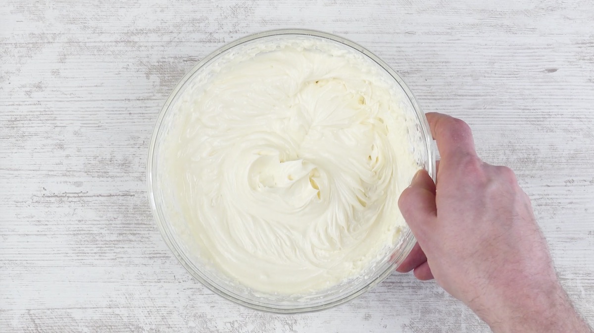 2.) Rühre währenddessen die Creme an. Vermische dafür Frischkäse, Mascarpone, Vanillearoma und Puderzucker miteinander. Stelle die Creme dann für eine Stunde in den Kühlschrank. Bereite jetzt auch schon die Mandarinenglasur vor. Verrühre 50 ml des Mandarinensafts mit Stärkemehl. Koche den restlichen Mandarinensaft langsam mit Puderzucker auf, rühre die Mandarinensaft-Stärke-Mischung unter und lass das Ganze 15 Minuten köcheln. Lass die Glasur anschließend abkühlen.