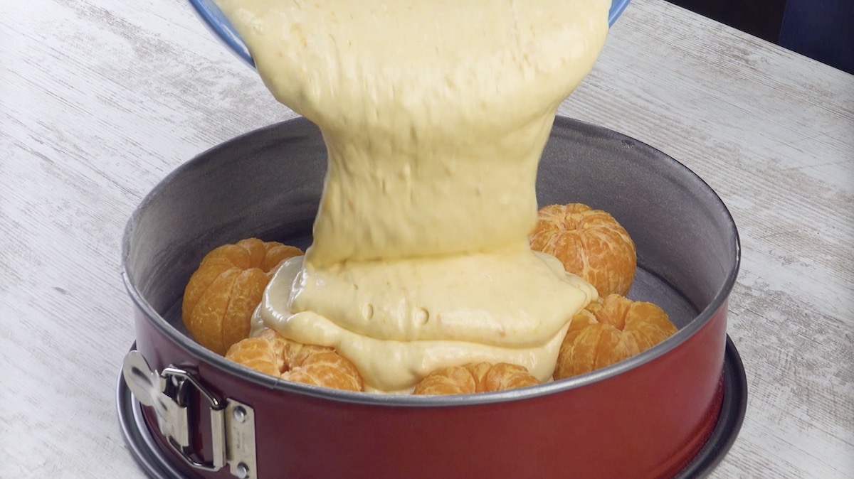 So geht es: 1.) Trenne die Eier. Schlage dann das Eiweiß mit dem Zucker auf. Hebe anschließend die Eigelbe, Mehl, Backpulver, Mandarinensaft sowie Mandarinenabrieb unter. Schäle sieben Mandarinen und lege sie in eine eingefettete und bemehlte Springform. Übergieße die Mandarinen mit dem Teig und streiche diesen anschließend glatt. Backe den Mandarinenkuchen dann für 90 Minuten bei 170 °C Ober-/Unterhitze. Lass den Kuchen anschließend vollständig auskühlen.