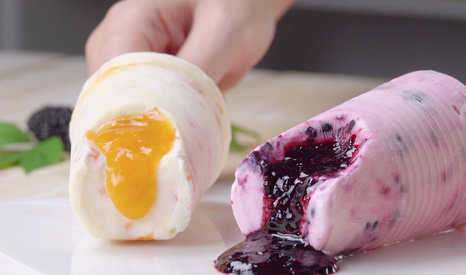 Kalte Köstlichkeiten sind nur was für den Sommer? Von wegen! Leckerbissen aus dem Tiefkühlfach sind nicht an Jahreszeiten gebunden! Und wenn du mal etwas anderes als nur Erdbeer-, Schokoladen- und Vanilleeis probieren und es sogar selbst zubereiten willst, probiere mal diese Schoko-Frucht-Bomben.